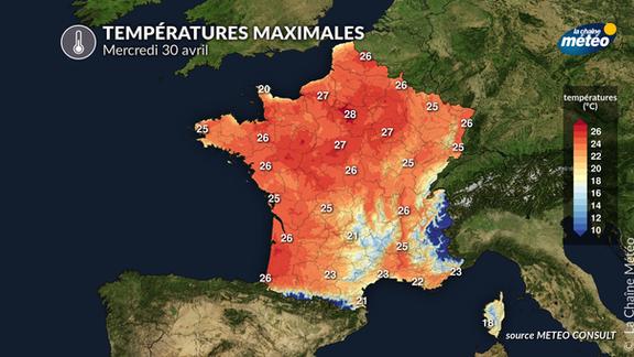 Ce mois d'avril finit en apothéose sur une grande partie du pays avec un soleil qui brille de mille feux et des températures qui s'envolent pour atteindre des niveaux de plein été sur la partie nord de la France. Si des records mensuels de chaleur ne seront à priori pas battus, des records journaliers de températures sont bien partis pour tomber sur des villes comme Paris, Lille, Reims ou Rouen.