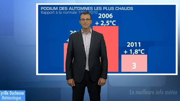 Cyrille Duchesne fait un 1er bilan de l'automne météorologique 2014 qui vient en deuxième position des automne les plus chauds depuis un siècle.