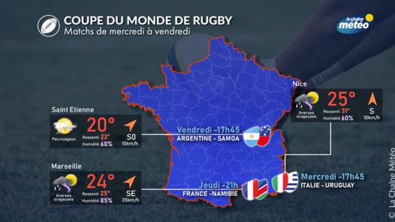 La Chaine Météo vous fournira régulièrement les conditions météo durant les matchs de ce mondial de Rugby.