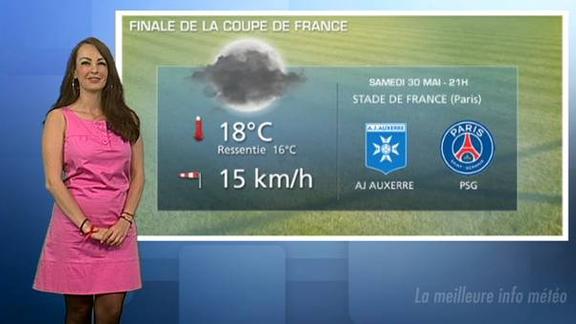 Soirée calme en perspective pour ce samedi 30 mai au Stade de France avec un temps sec mais assez nuageux, au coup d'envoi à 21h pour la finale de la Coupe de France opposant Auxerre au Paris-Saint-Germain. Les prévisions en vidéo avec Alexandra Blanc.