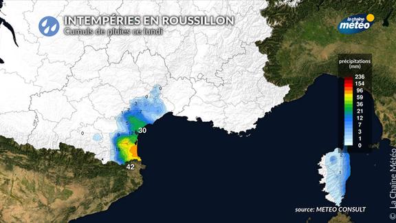 Un épisode de fortes pluies concerne une partie des Pyrénées-Orientales entre lundi et mardi. D'importants cumuls sont attendus. Le point sur cette dégradation bienvenue en cette période de sécheresse dans ce département.