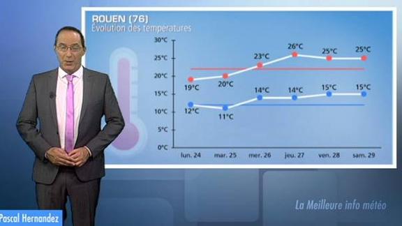 De nouveau plus de 30° en cours de semaine. Deux exemples : Rouen et Lyon.