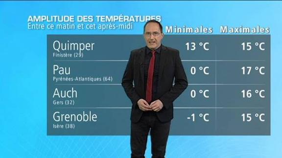 Forte amplitude des valeurs entre le matin et l'après-midi si vous êtes sur les régions du sud-ouest. Ailleurs, c'est aussi la douceur mais avec moins de variations.