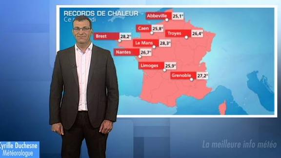 Le flux de sud qui fait remonter de l'air subtropical sur la France depuis 2 jours nous vaut de battre de nombreux records de chaleur. A partir de jeudi, une baisse des températures s'amorce et va s'amplifier d'ici le week-end.