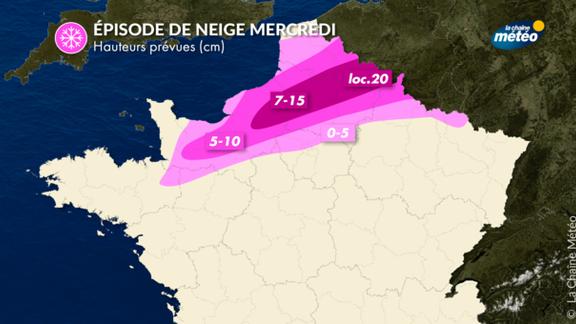 De mercredi à jeudi, une perturbation active circule sur une large moitié nord en apportant beaucoup de pluie, mais aussi un épisode de neige et de pluies verglaçantes de la Normandie et du Bassin parisien aux frontières du nord-est, avec de nombreuses perturbations à prévoir dans les transports.