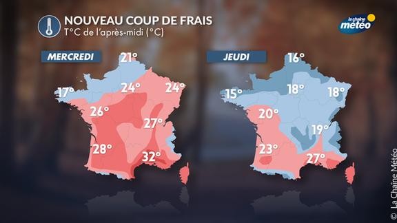 Les températures repartiront à la baisse dès jeudi, passant souvent en-dessous des normales saisonnières. Retrouvez toutes les explications de notre météorologue Cyril Bonnefoy.