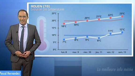 Après un début de semaine frais, les températures remontent au Nord, et au Sud, la chaleur se maintient. Deux exemples : Rouen et Lyon.