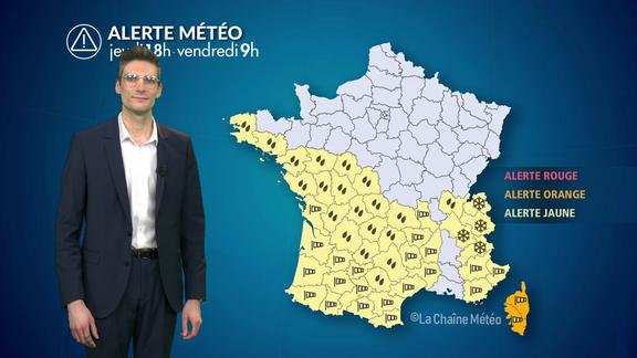 Les chutes de neige s'estompent sur les Alpes. La tempête en Corse diminue en fin de nuit. Ensuite, la situation météo restera très agitée pour le week-end, entre pluies, violent mistral et neige en plaine : de nouvelles alertes seront émises concernant ces paramètres qui pourront perturber le trafic pendant le week-end.